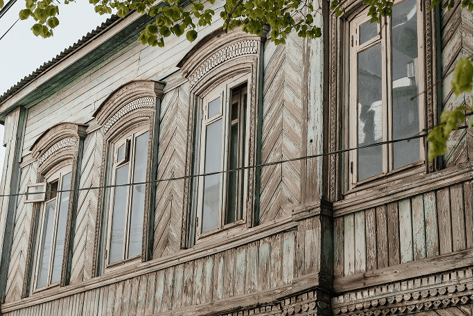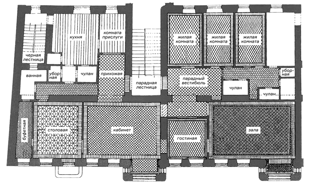 Такое же разделение этажей можно было наблюдать в жилом доме XIX века на улице Баженова (территория психиатрической больницы).