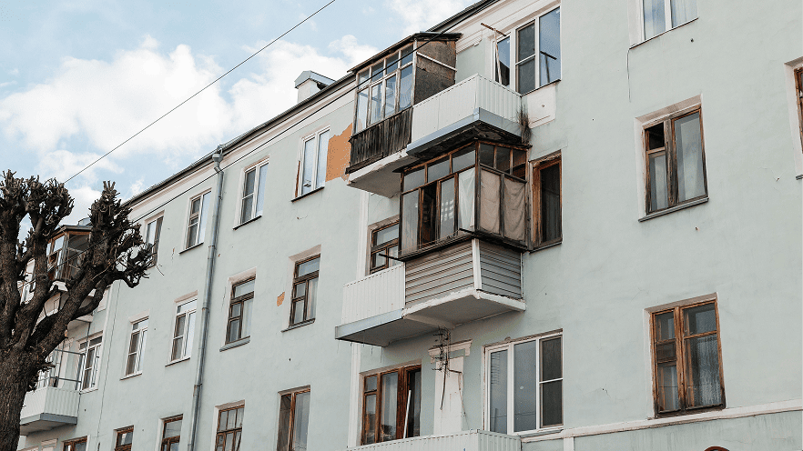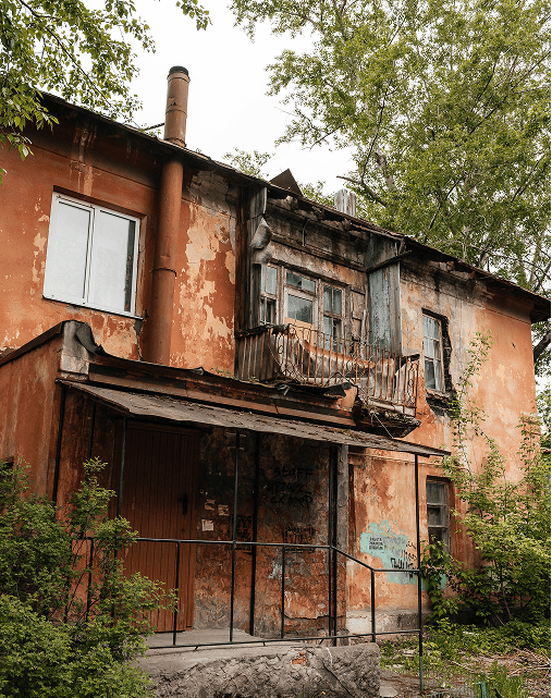 Иногда попадались «сталинки» в 2-3 этажа — в Рязани такие есть в старой части Горрощи. Там от 8 до 18 квартир, у них бывают общие балкончики на втором этаже или веранды на первом, стены не только из двух слоев кирпича с засыпкой между ними, но и из шлакоблоков. В них снова деревянные перекрытия и нет подвалов.